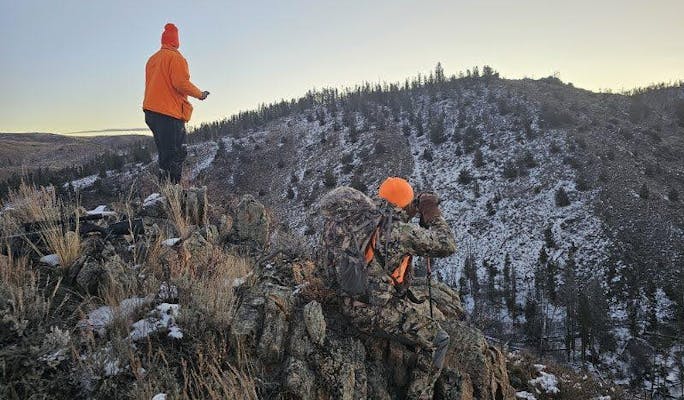 As daylight faded, “Dan the Man” and Davis, brothers from North Dakota, arrived with Darren, Dan the Man’s best friend and a last-minute addition. Both brothers were seasoned deer hunters but new to this rugged terrain. Spirits were high as we settled into the cabin, scanning the landscape for elk under a painted sunset. The high country’s towering peaks and crisp air humbled us, filling the group with curiosity and wonder.